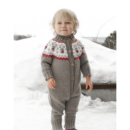 Run Run Run Run Rudolph från DROPS Design är en fin overall för barn, stickad i Drops Merino Extra Fine. T-shirten är stickad uppifrån och ner, med ett runt ok och nordiskt mönster.