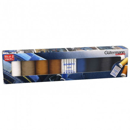 Gütermann Trådset Sytråd Denim med Jeansnålar Str. 90/100/110 8 färger 100m – 8 st