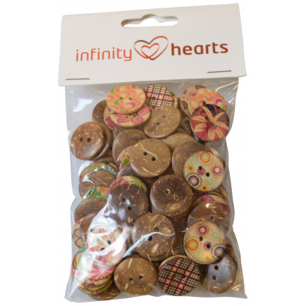 Infinity Hearts Assorterade Knappar med motiv Kokos 20mm – 100 st.