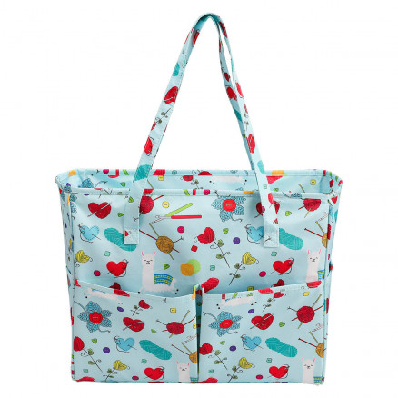 Med en garnväska är det enkelt att hålla reda på garn och stickor eller virknålar till ett pågående projekt, oavsett om du är hemma i vardagsrummet eller på språng. Den här garnväskan i polyester från Infinity Hearts har plats för både garn och tillbehör, och med sin ljusa ljusblå färg och söta tryck av garnnystan, virknålar, hjärtan och söta alpackor lyser den upp i alla rum.