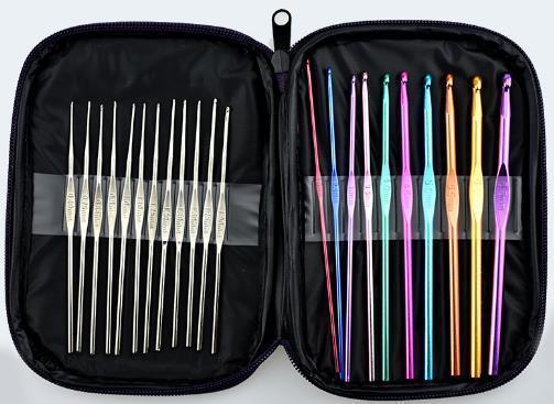 Ett härligt set med hela 22 st. virknålar i aluminium och rostfritt stål. Nu behöver du inte oroa dig för att inte ha rätt virknål hemma.