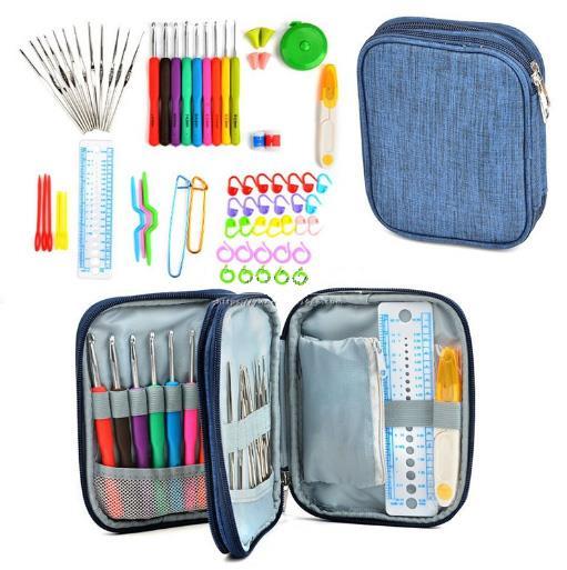 Här har du ett riktigt proffs set – all in one, innehåller de flesta tillbehör man behöver för att virka och sticka.