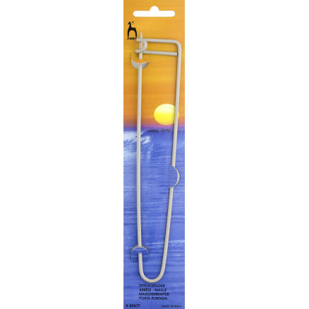 Du får 1 st. maskhållare i detta paket. Maskhållaren är tillverkad i aluminium, vilket gör den robust och garanterar en lång livslängd. Samtidigt är aluminiumet flexibelt så att du enkelt kan skjuta dina maskor på och av hållaren. Hela maskhållaren har en storlek på 20 cm och är därför lämplig för större stickprojekt.